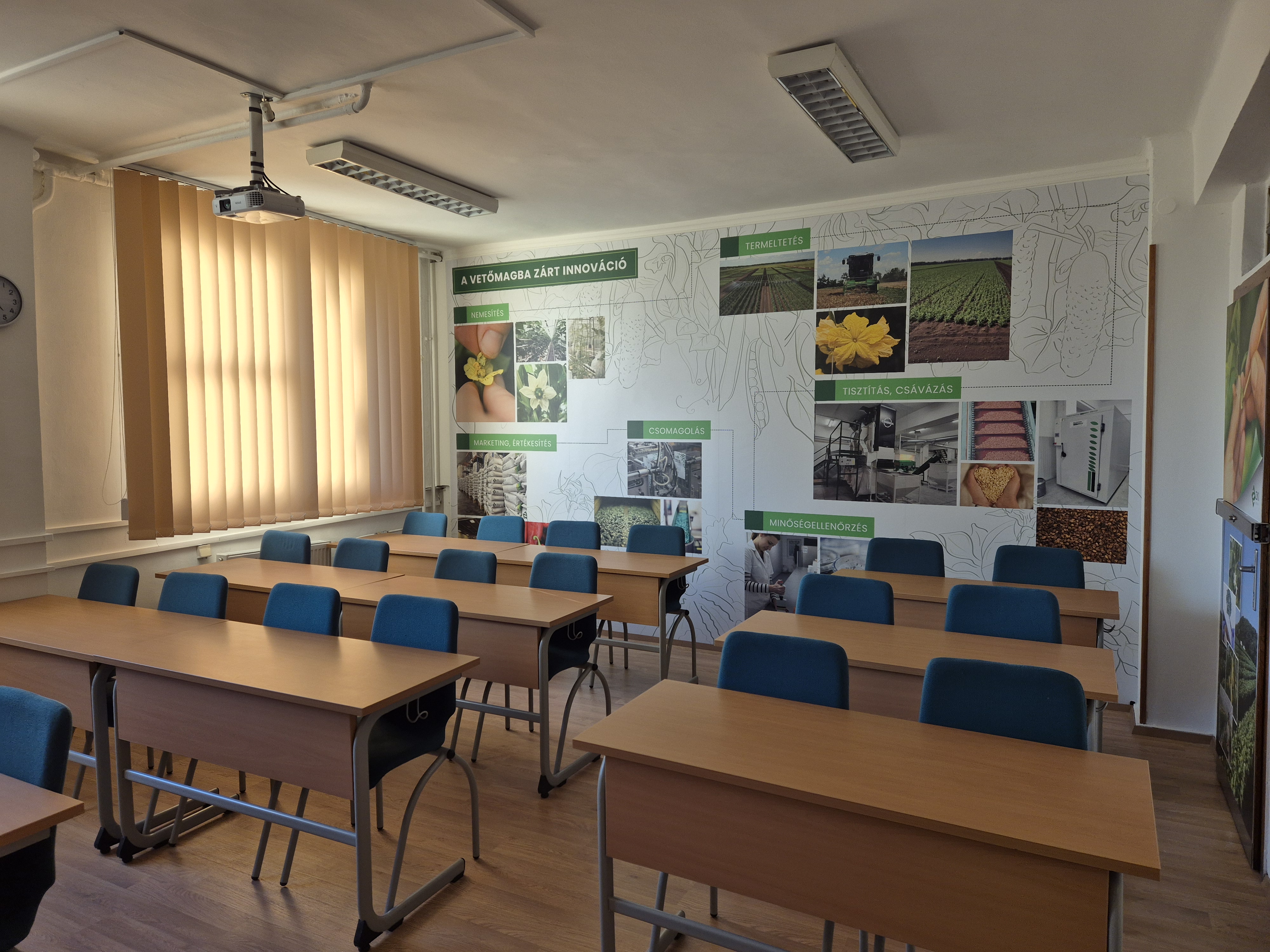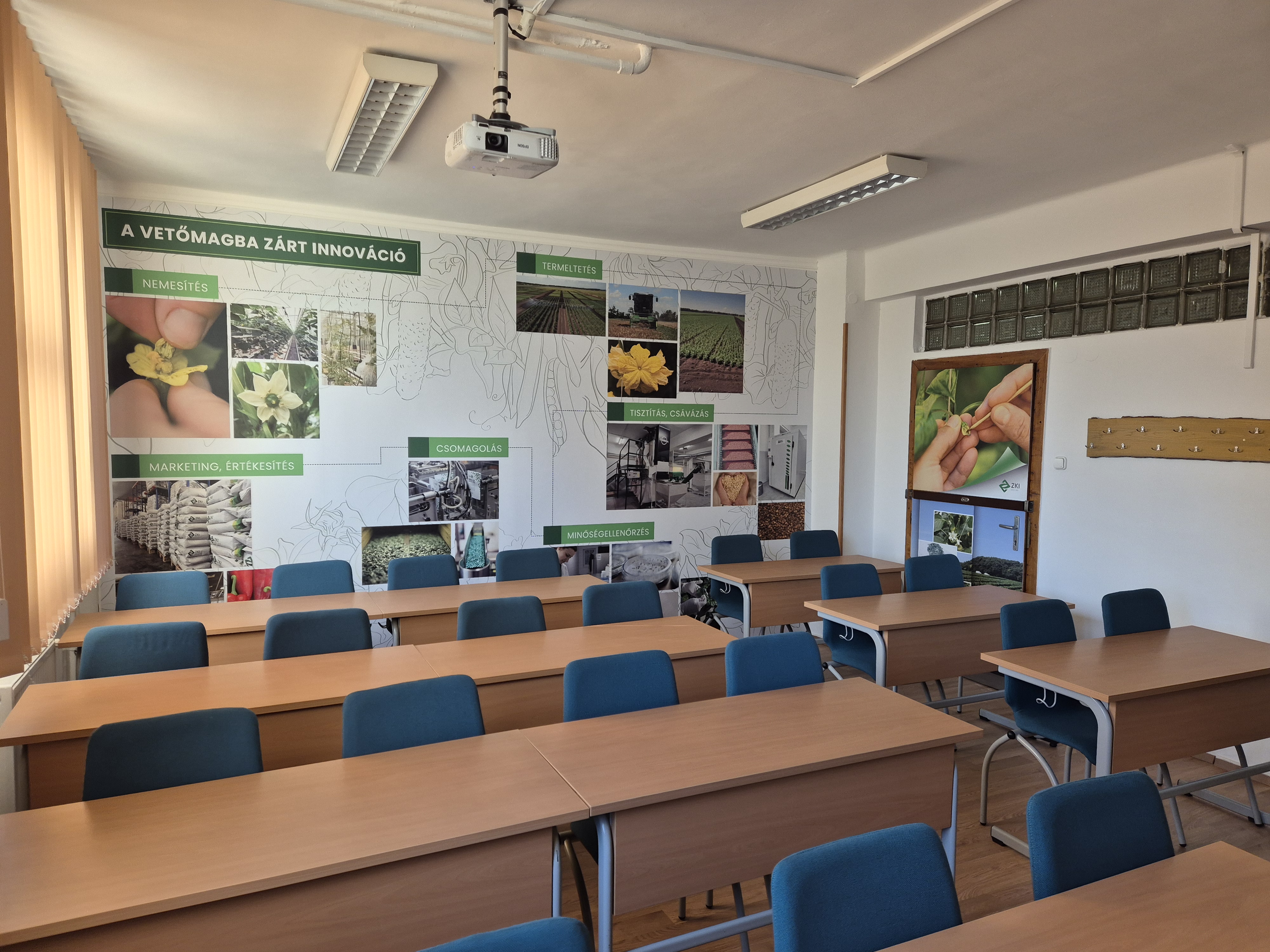Az ünnepség folytatásában felújított tanterem került átadásra a Budai Campuson. Az „A” épület első emeletén lévő, Zöldség- és Gombatermesztési Tanszék szemináriumi terme a Tanszék, a Budai Campus, valamint a ZKI ZRt. anyagi támogatásából került felújításra. A mintegy 6 millió Ft értékű fejlesztés során új radiátorok és korszerű klíma került beszerelésre, megújult a padló és a fal, új szalagfüggönyök kerültek fel. A modern oktatási igényeknek megfelelően nagyteljesítményű projektor, vetítővászon és digitális okostábla kerültek a falakra, amelyek a ZKI Zrt. nagylelkű támogatásának köszönhetően hangulatos dekorációt is kaptak. Ezen felül a hallgatói székek és asztalok is cserére kerültek, 24 hallgató és az oktató számára teremtve ideális tanulói környezetet. Professzor úr tiszteletére a terem mellett kihelyezett tabló ismerteti munkásságát.
