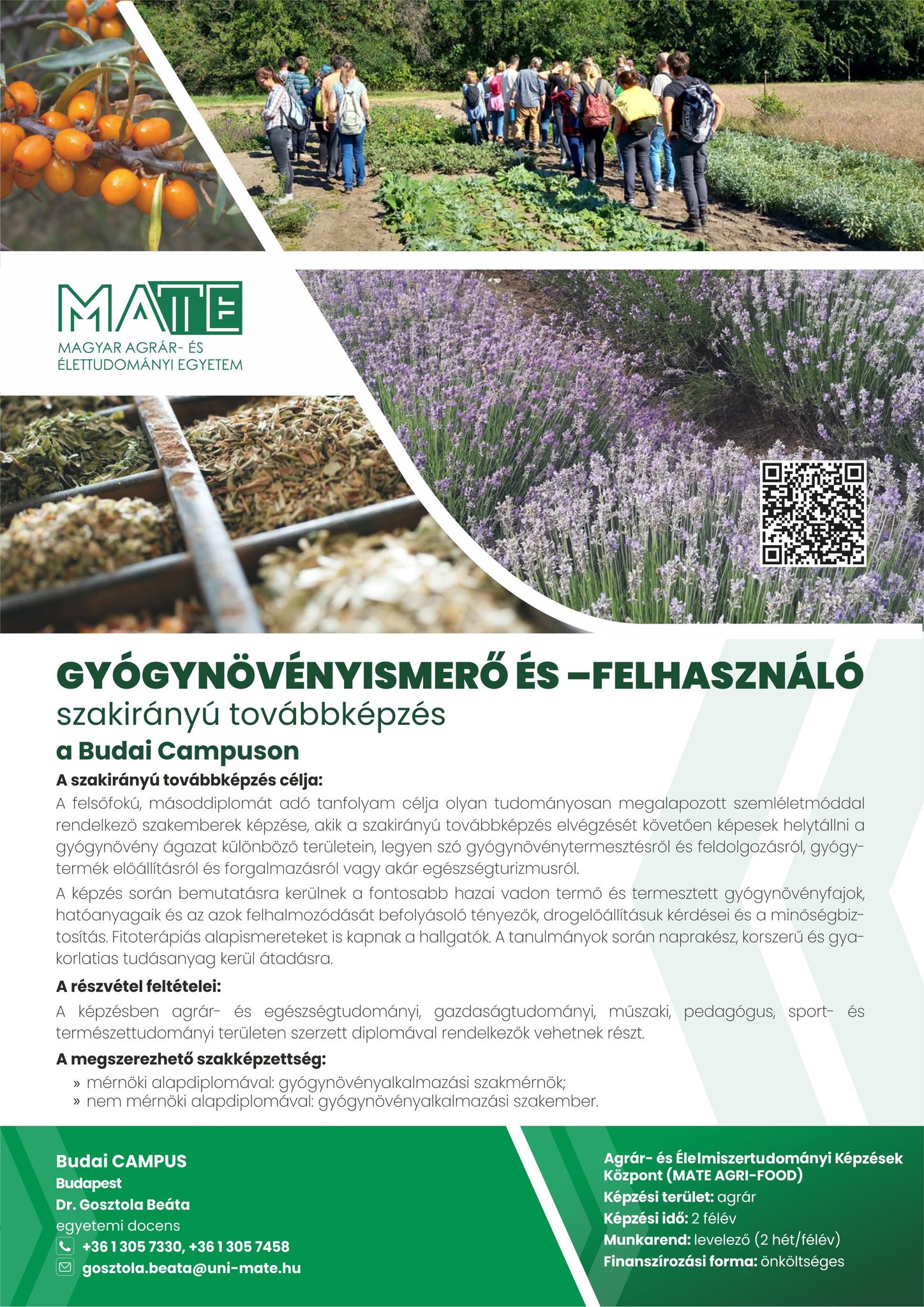 - szakmérnök képzésen: gyógynövényalkalmazási szakmérnök,
